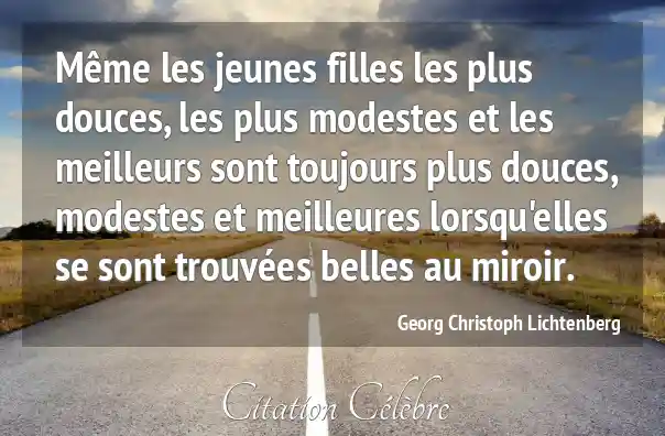 Même les jeunes filles les plus douces, les plus modestes et les meilleurs sont toujours plus douces, modestes et meilleures lorsqu'elles se sont trouvées belles au miroir.