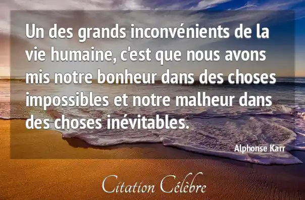 Un des grands inconvénients de la vie humaine, c'est que nous avons mis notre bonheur dans des choses impossibles et notre malheur dans des choses inévitables.