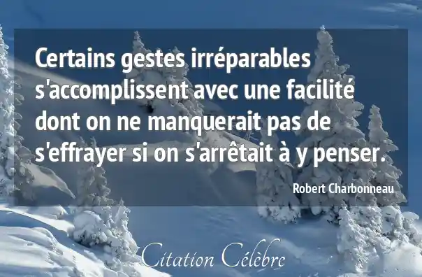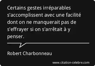 Certains gestes irréparables s'accomplissent avec une facilité dont on ne manquerait pas de s'effrayer si on s'arrêtait à y penser.