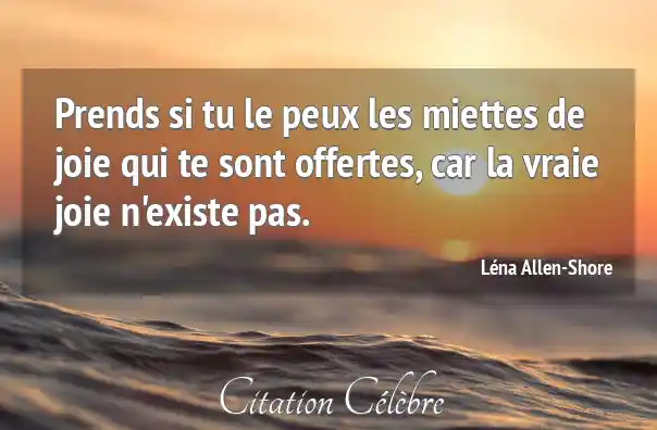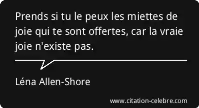 Prends si tu le peux les miettes de joie qui te sont offertes, car la vraie joie n'existe pas.