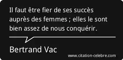 Il faut être fier de ses succès auprès des femmes ; elles le sont bien assez de nous conquérir.
