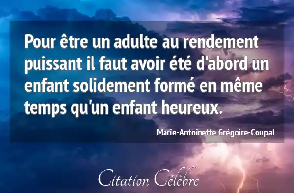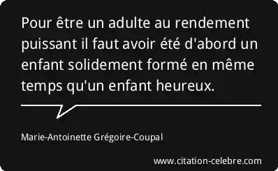Pour être un adulte au rendement puissant il faut avoir été d'abord un enfant solidement formé en même temps qu'un enfant heureux.