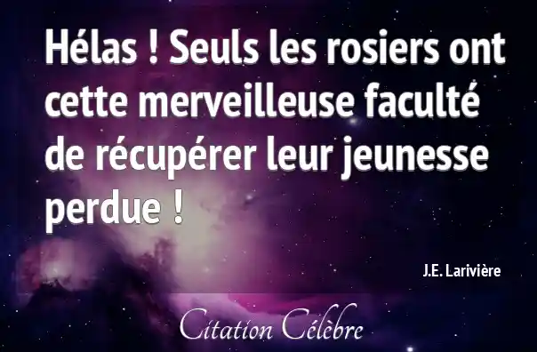 Hélas ! Seuls les rosiers ont cette merveilleuse faculté de récupérer leur jeunesse perdue !