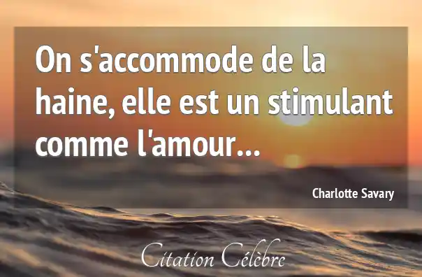 On s'accommode de la haine, elle est un stimulant comme l'amour...
