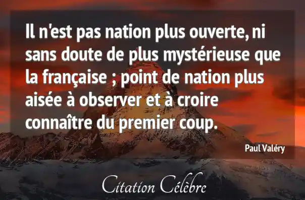 Il n'est pas nation plus ouverte, ni sans doute de plus mystérieuse que la française ; point de nation plus aisée à observer et à croire connaître du premier coup.