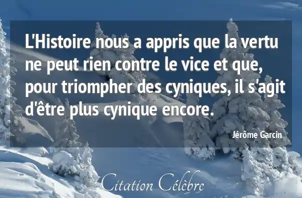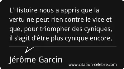 L'Histoire nous a appris que la vertu ne peut rien contre le vice et que, pour triompher des cyniques, il s'agit d'être plus cynique encore.