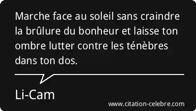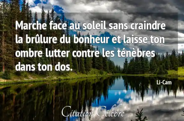 Marche face au soleil sans craindre la brûlure du bonheur et laisse ton ombre lutter contre les ténèbres dans ton dos.