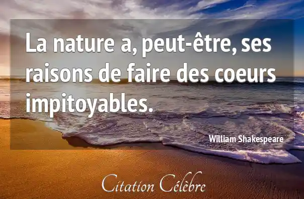 La nature a, peut-être, ses raisons de faire des coeurs impitoyables.