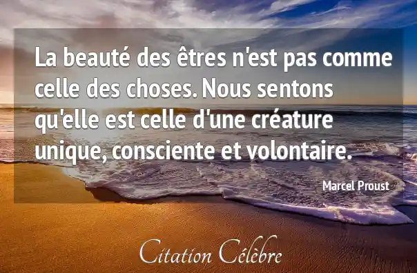La beauté des êtres n'est pas comme celle des choses. Nous sentons qu'elle est celle d'une créature unique, consciente et volontaire.