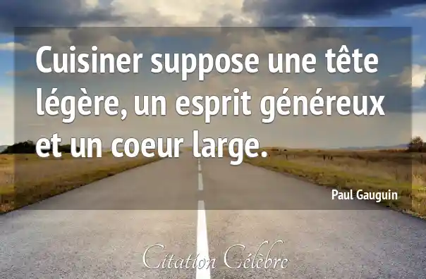 Cuisiner suppose une tête légère, un esprit généreux et un coeur large.
