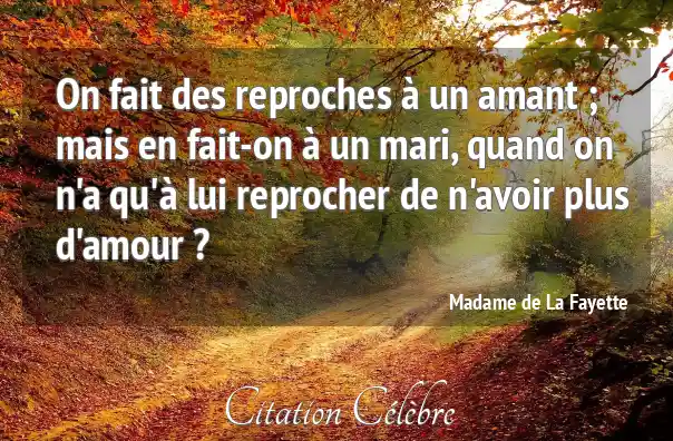 On fait des reproches à un amant ; mais en fait-on à un mari, quand on n'a qu'à lui reprocher de n'avoir plus d'amour ?