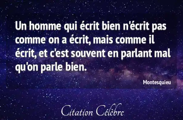 Un homme qui écrit bien n'écrit pas comme on a écrit, mais comme il écrit, et c'est souvent en parlant mal qu'on parle bien.