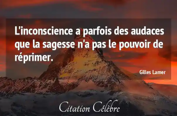 L'inconscience a parfois des audaces que la sagesse n'a pas le pouvoir de réprimer.