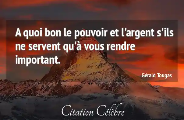 A quoi bon le pouvoir et l'argent s'ils ne servent qu'à vous rendre important.