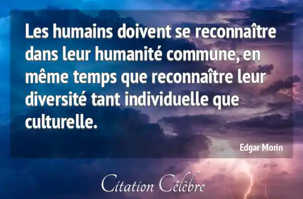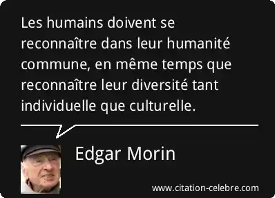 Les humains doivent se reconnaître dans leur humanité commune, en même temps que reconnaître leur diversité tant individuelle que culturelle.