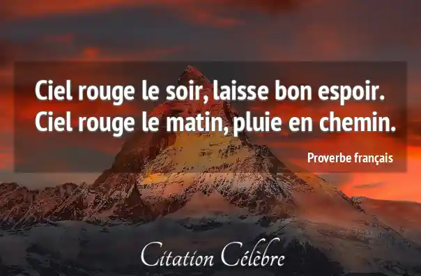 Ciel rouge le soir, laisse bon espoir.Ciel rouge le matin, pluie en chemin.