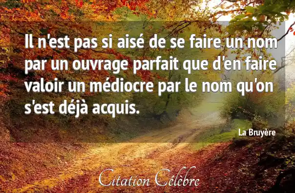 Il n'est pas si aisé de se faire un nom par un ouvrage parfait que d'en faire valoir un médiocre par le nom qu'on s'est déjà acquis.