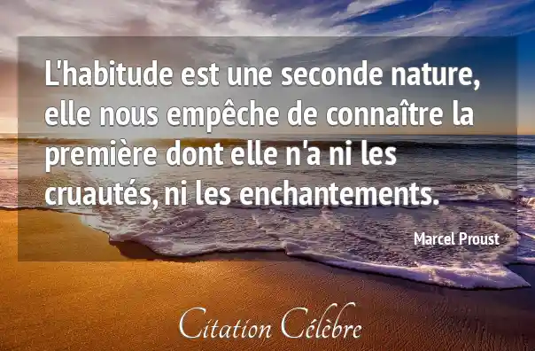 L'habitude est une seconde nature, elle nous empêche de connaître la première dont elle n'a ni les cruautés, ni les enchantements.