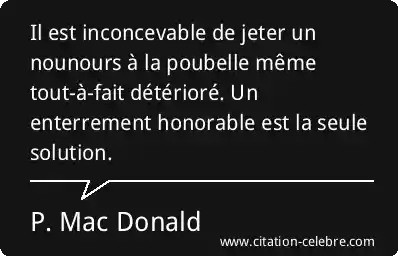 Il est inconcevable de jeter un nounours à la poubelle même tout-à-fait détérioré. Un enterrement honorable est la seule solution.