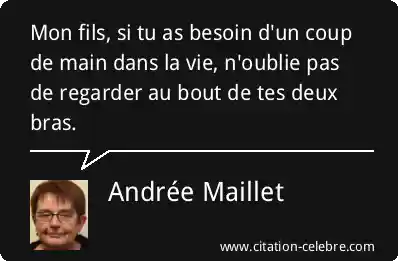 Mon fils, si tu as besoin d'un coup de main dans la vie, n'oublie pas de regarder au bout de tes deux bras.