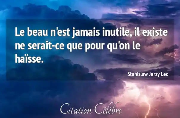 Le beau n'est jamais inutile, il existe ne serait-ce que pour qu'on le haïsse.