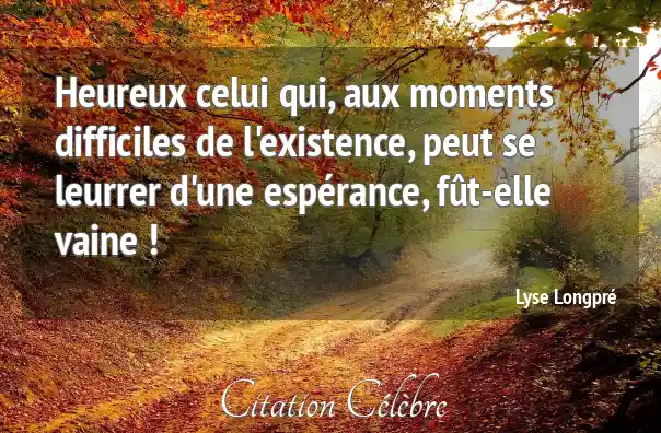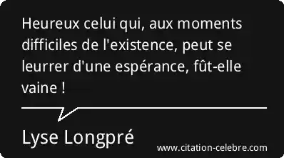 Heureux celui qui, aux moments difficiles de l'existence, peut se leurrer d'une espérance, fût-elle vaine !