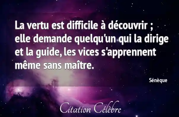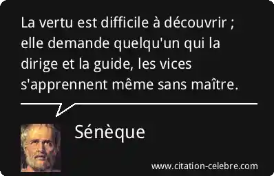 La vertu est difficile à découvrir ; elle demande quelqu'un qui la dirige et la guide, les vices s'apprennent même sans maître.