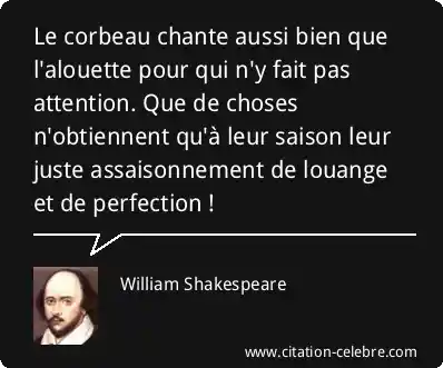 Le corbeau chante aussi bien que l'alouette pour qui n'y fait pas attention. Que de choses n'obtiennent qu'à leur saison leur juste assaisonnement de louange et de perfection !
