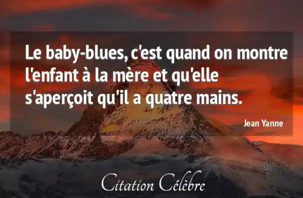 Le baby-blues, c'est quand on montre l'enfant à la mère et qu'elle s'aperçoit qu'il a quatre mains.