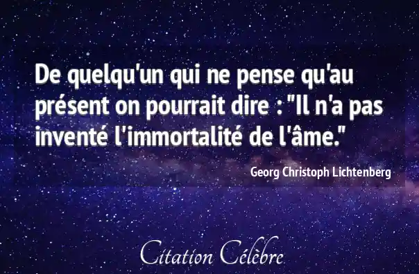De quelqu'un qui ne pense qu'au présent on pourrait dire : "Il n'a pas inventé l'immortalité de l'âme."