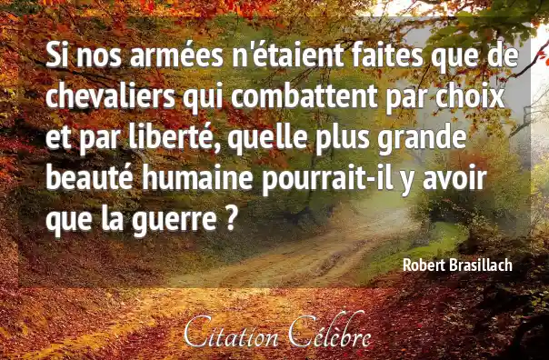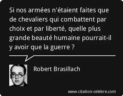 Si nos armées n'étaient faites que de chevaliers qui combattent par choix et par liberté, quelle plus grande beauté humaine pourrait-il y avoir que la guerre ?