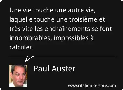 Une vie touche une autre vie, laquelle touche une troisième et très vite les enchaînements se font innombrables, impossibles à calculer.
