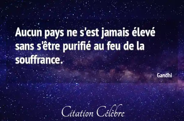 Aucun pays ne s'est jamais élevé sans s'être purifié au feu de la souffrance.