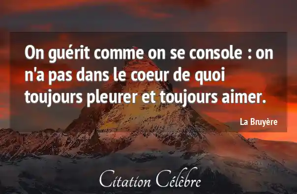 On guérit comme on se console : on n'a pas dans le coeur de quoi toujours pleurer et toujours aimer.