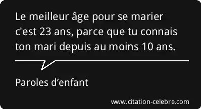 Le meilleur âge pour se marier c'est 23 ans, parce que tu connais ton mari depuis au moins 10 ans.