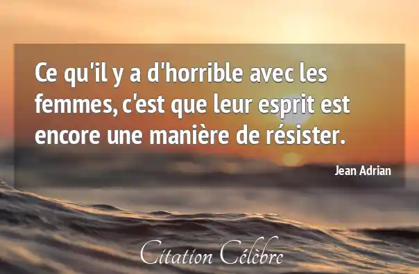 Ce qu'il y a d'horrible avec les femmes, c'est que leur esprit est encore une manière de résister.