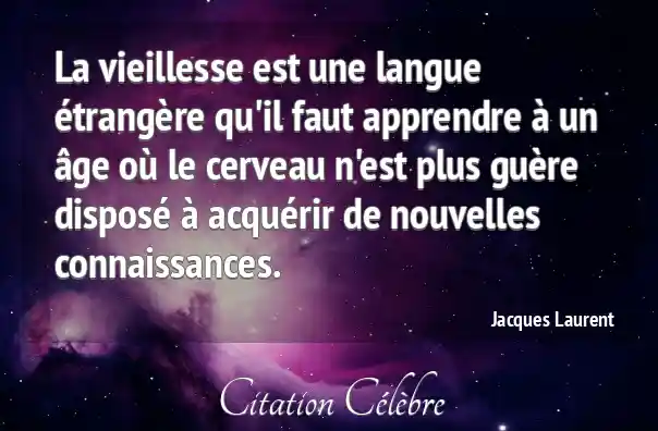 La vieillesse est une langue étrangère qu'il faut apprendre à un âge où le cerveau n'est plus guère disposé à acquérir de nouvelles connaissances.