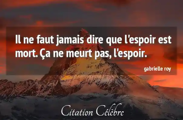 Il ne faut jamais dire que l'espoir est mort. Ça ne meurt pas, l'espoir.