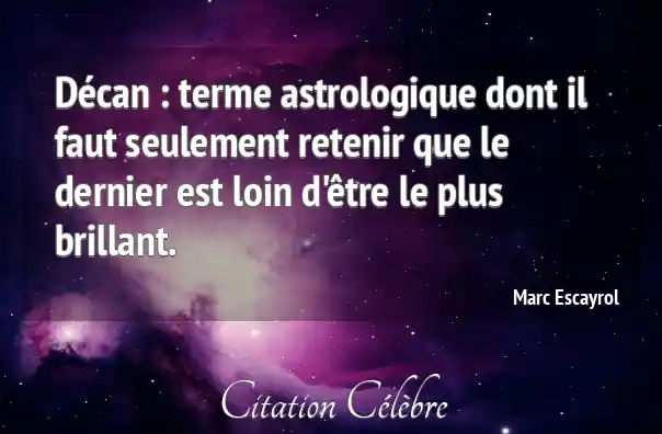 Décan : terme astrologique dont il faut seulement retenir que le dernier est loin d'être le plus brillant.