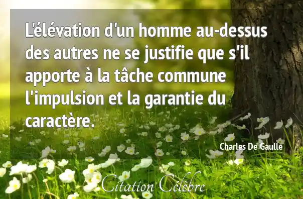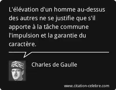 L'élévation d'un homme au-dessus des autres ne se justifie que s'il apporte à la tâche commune l'impulsion et la garantie du caractère.