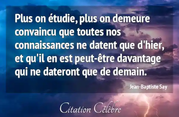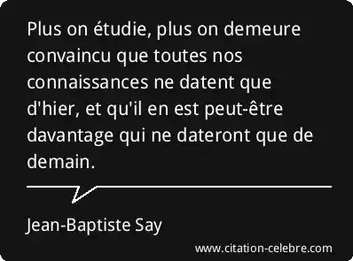 Plus on étudie, plus on demeure convaincu que toutes nos connaissances ne datent que d'hier, et qu'il en est peut-être davantage qui ne dateront que de demain.