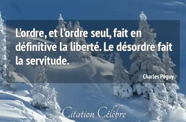 L'ordre, et l'ordre seul, fait en définitive la liberté. Le désordre fait la servitude.