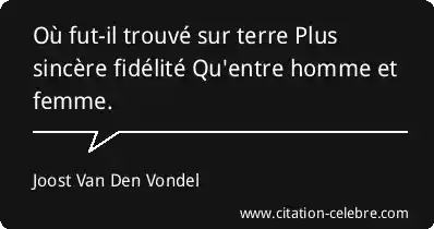 Où fut-il trouvé sur terre Plus sincère fidélité Qu'entre homme et femme.