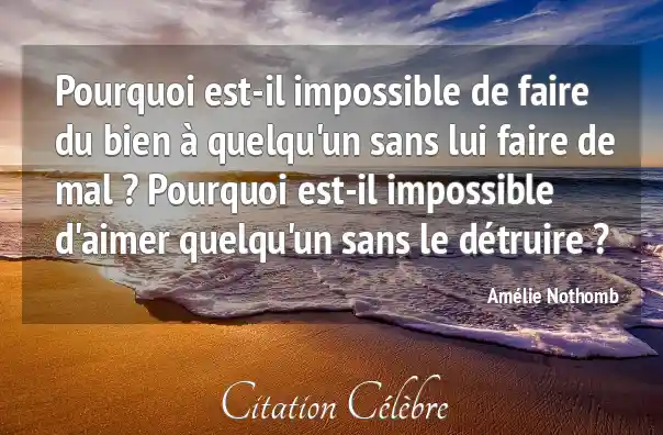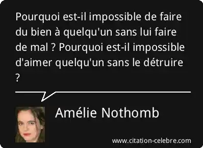 Pourquoi est-il impossible de faire du bien à quelqu'un sans lui faire de mal ? Pourquoi est-il impossible d'aimer quelqu'un sans le détruire ?