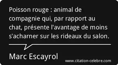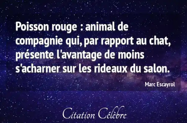 Poisson rouge : animal de compagnie qui, par rapport au chat, présente l'avantage de moins s'acharner sur les rideaux du salon.