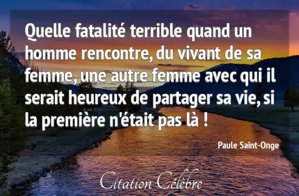 Quelle fatalité terrible quand un homme rencontre, du vivant de sa femme, une autre femme avec qui il serait heureux de partager sa vie, si la première n'était pas là !