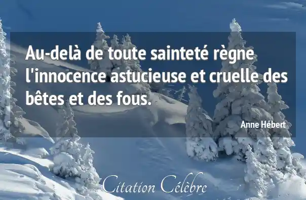 Au-delà de toute sainteté règne l'innocence astucieuse et cruelle des bêtes et des fous.