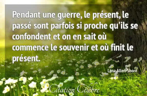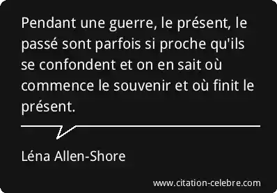 Pendant une guerre, le présent, le passé sont parfois si proche qu'ils se confondent et on en sait où commence le souvenir et où finit le présent.
