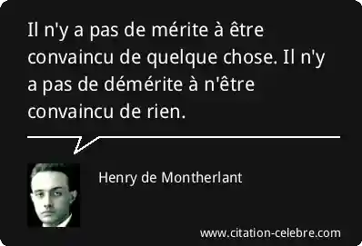 Il n'y a pas de mérite à être convaincu de quelque chose. Il n'y a pas de démérite à n'être convaincu de rien.
