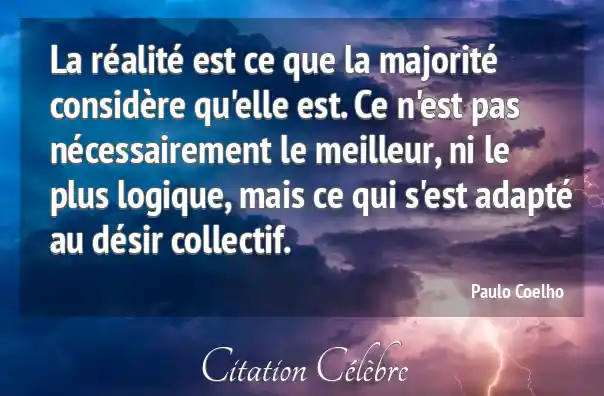 La réalité est ce que la majorité considère qu'elle est. Ce n'est pas nécessairement le meilleur, ni le plus logique, mais ce qui s'est adapté au désir collectif.
